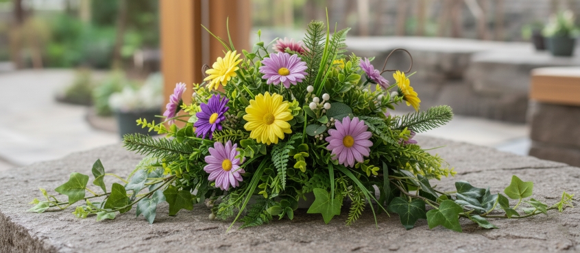 Реалістичний зовнішній вигляд і приємна на дотик текстура Стійкість до вологи, сонячного світла і механічного впливу Не вимагає догляду, не в’яне Універсальність застосування: декор, флористика, траурна флористика Ідеальна для багаторазового використання Доступна ціна при купівлі гуртом