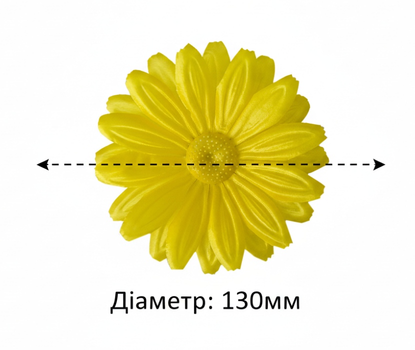 Штучна квітка Гербери з яскраво-жовтим центром — реалістичний та естетичний елемент для флористичних і декоративних композицій. Виготовлена з високоякісного текстильного матеріалу, який добре передає структуру справжньої пелюстки. Ідеально підходить для використання у флористиці, зокрема у траурних композиціях, оформленні подій, декорі інтер'єру, фотозон, а також для комерційного використання при гуртових закупівлях.
