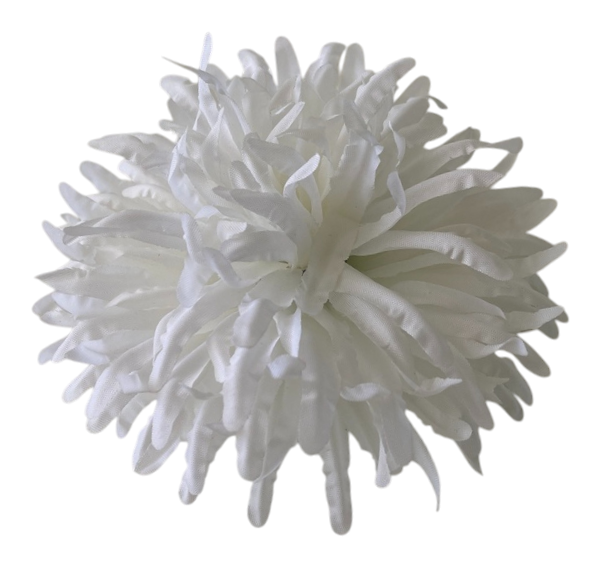 Штучна квітка "Хризантема 02", виготовлена з текстилю високої якості, має об’ємну, густу форму з численними хвилястими пелюстками, які створюють пишний кулястий силует.