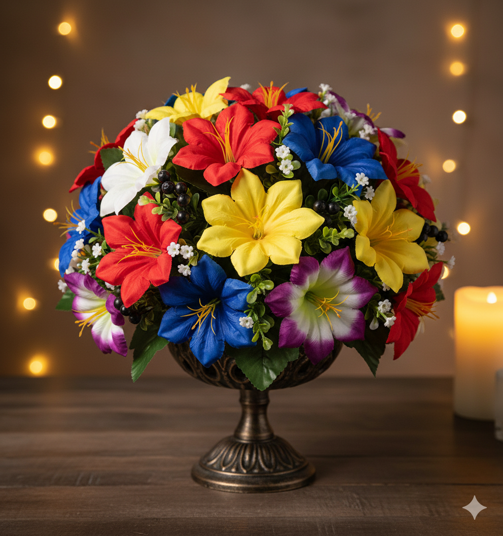 Квітка Прес 7 виконана з об’ємними пелюстками та виразними тичинками. Її форма та текстура точно імітують природну квітку, що робить її чудовим елементом у ритуальних композиціях, вінках та декоративних прикрасах. Завдяки використанню якісного шовкового матеріалу квітка зберігає привабливість протягом тривалого часу.