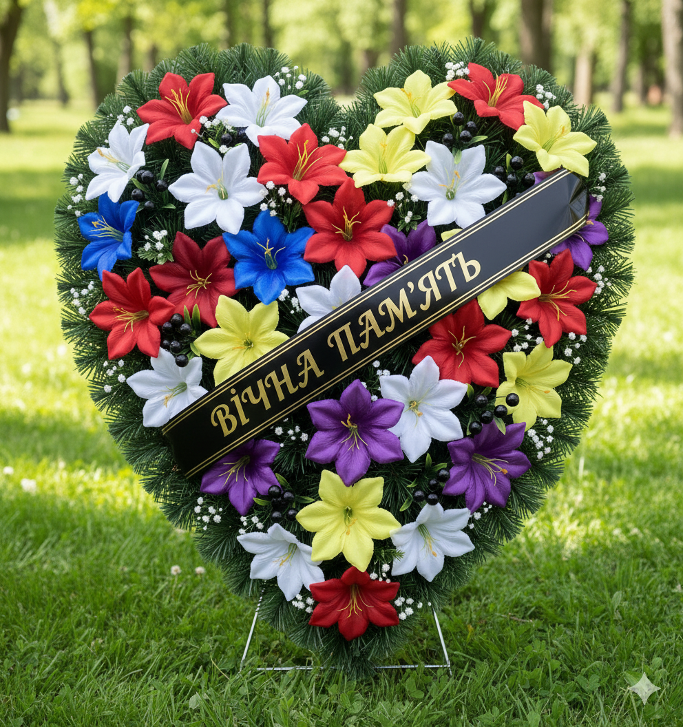 Штучна півонія — елегантна декоративна квітка для оформлення ритуальних композицій, вінків та флористичних рішень.