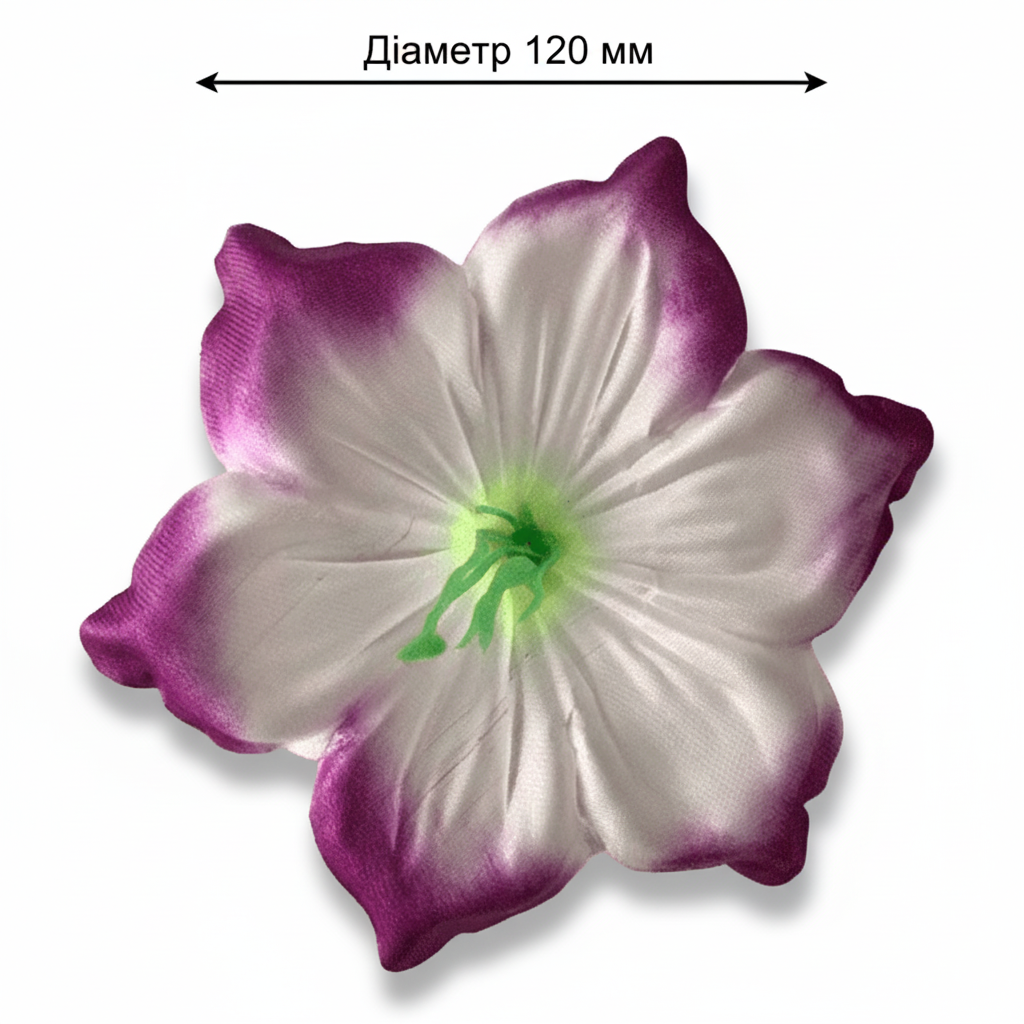 Квітка Прес 8 має виразну шестипелюсткову форму з рельєфною текстурою, виготовлена зі стійкого шовкового матеріалу. Її легко комбінувати у флористичних виробах будь-якої складності. Матеріал не втрачає кольору та форми з часом, що робить її ідеальним вибором для майстерень, фабрик вінків та флористичних цехів.