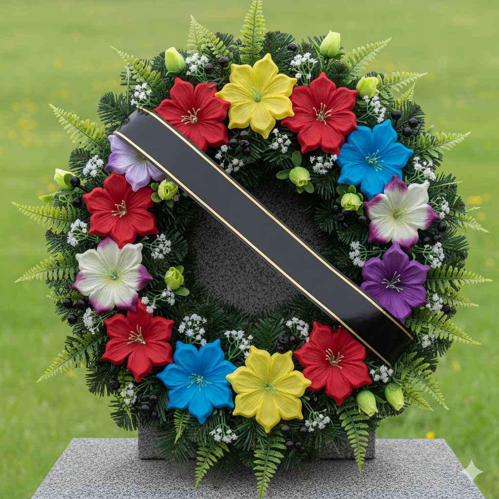 Кала Мала — компактна штучна квітка з текстилю, створена спеціально для ритуальної флористики. Ідеально підходить для оформлення жалобних композицій, вінків та кошиків. Доступна гуртом.