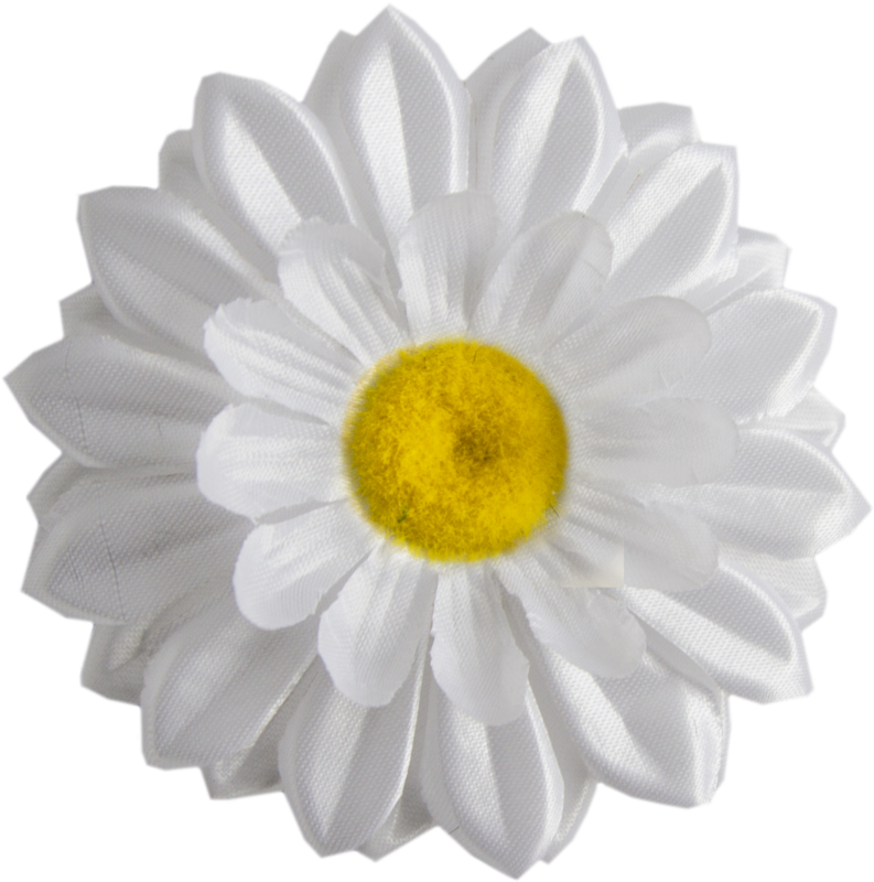 Штучна квітка Ромашка. Компактна, текстильна, з гладкою серединкою. Підходить для оформлення флористичних композицій, вінків та декору.