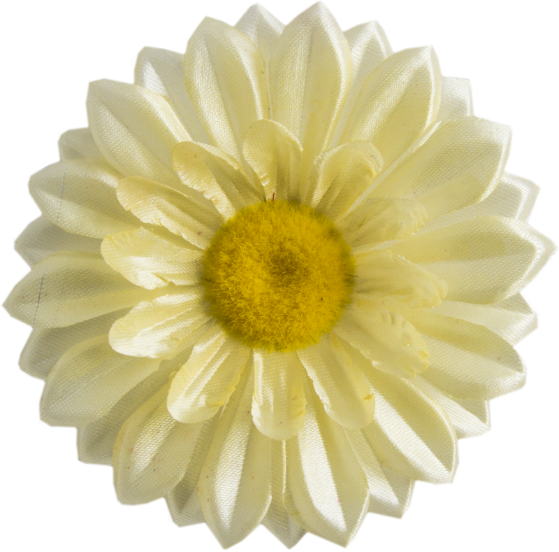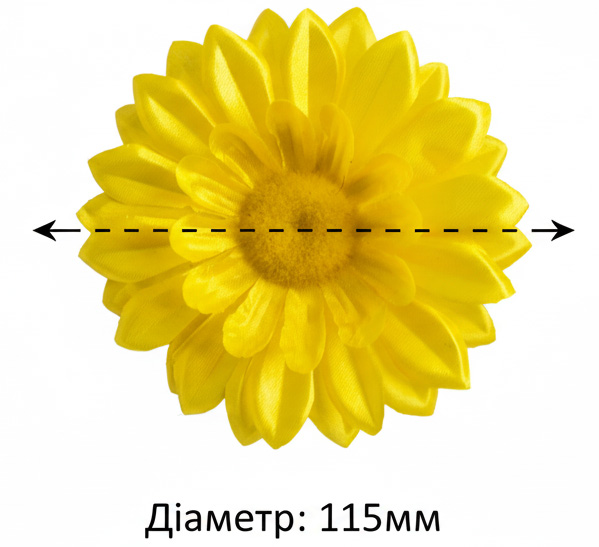 Квітка Ромашка G7 виготовлена з щільної текстильної тканини з гладкою фактурою. Має подвійний ряд пелюсток, які рівномірно розміщені навколо круглої серцевини з ворсистою структурою. Візуально виглядає об'ємно та симетрично. Ідеальна для декоративних та ритуальних композицій.