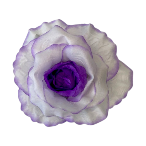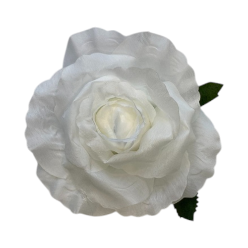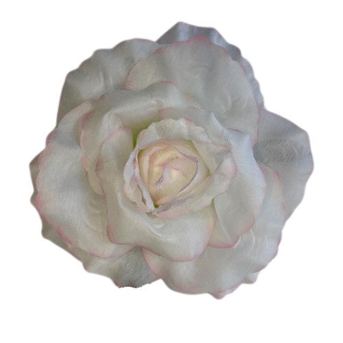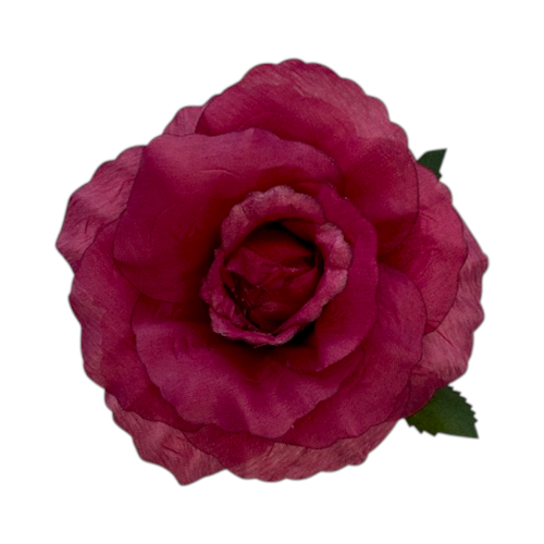 Пишна штучна квітка троянди з багатошаровими пелюстками, що імітує повністю розкритий бутон.