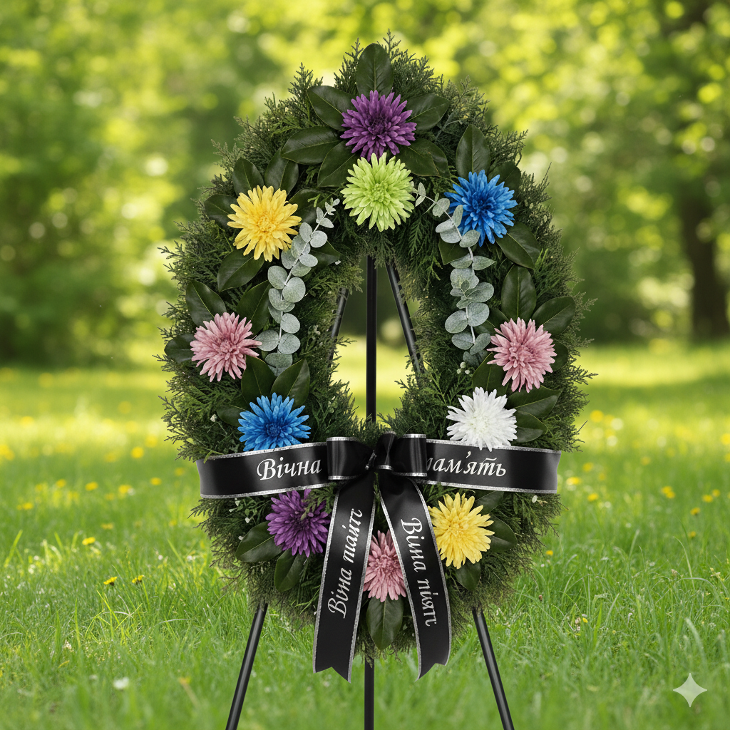 Подходит для самостоятельного применения, оформления букетов, корзин, ритуальных венков и погребальных композиций.